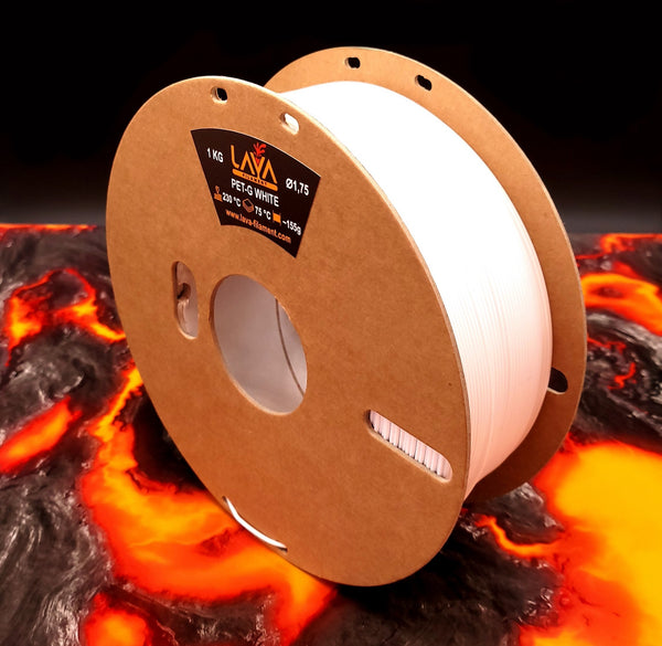 Original LAVA© Filament PETG White / Weiß Total Weight: ~1,155kg Spool Weight: ~155g Product Information: disinfectable weatherproof high UV - resistance High breaking strength Environmentally friendly wound on hard paper...
